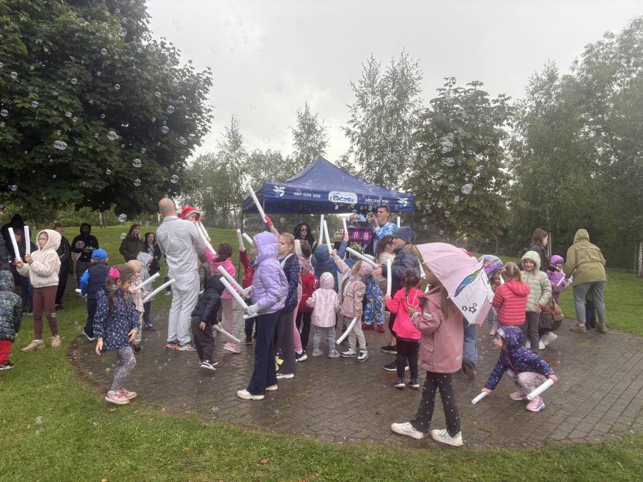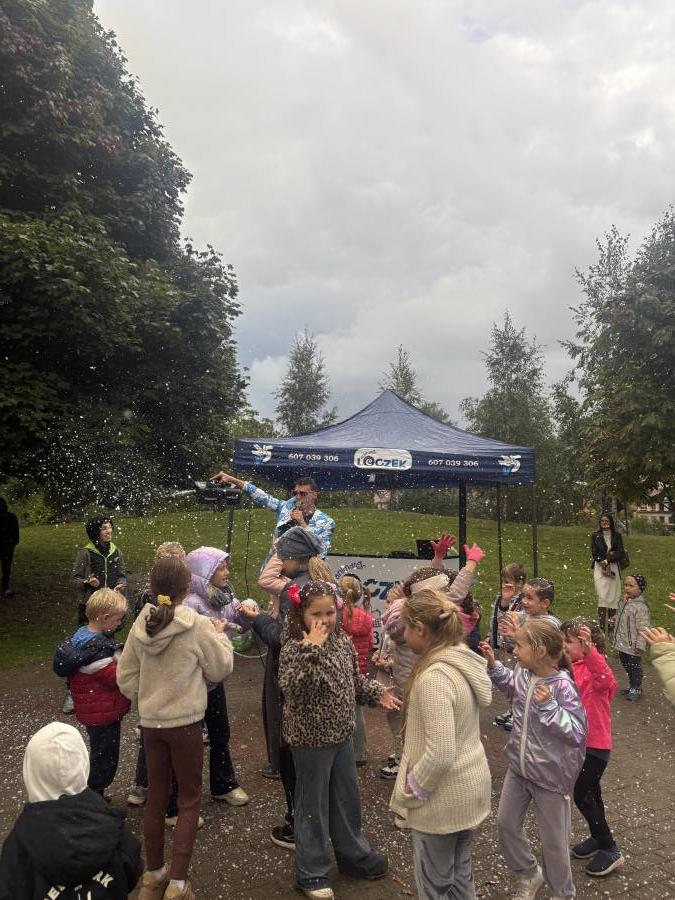 Festyn rodzinny Pożegnanie lata to nasza tradycyjna rozrywka, która na długo pozostaje w naszej pamięci. Chociaż tego dnia pogoda nie rozpieszczała uczestników, deszcz nie przeszkodził nam we wspaniałej zabawie. Dzieci z entuzjazmem uczestniczyły w przygotowanych zabawach i konkursach, które zorganizował animator - Pan Loczek, a rodzice chętnie włączali się do wspólnej integracji. Kolorowe parasole dodały wydarzeniu uroku, a serdeczna atmosfera sprawiła, że nikt nie myślał o niesprzyjającej aurze. Pyszny poczęstunek, rozmowy oraz radosny śmiech dzieci były najlepszym dowodem na to, że dobra zabawa nie zależy od pogody, ale od ludzi, którzy ją tworzą.