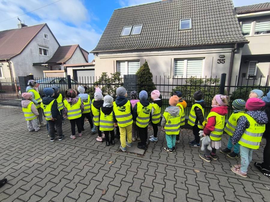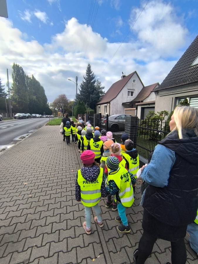 Grupa Niezapominajki świętowała Dzień chleba odwiedzając mini piekarnię w pobliżu przedszkola. Na zdjęciu dzieci wracają już z wycieczki. Teraz będą dzielić się pysznym i chrupiącym chlebkiem.