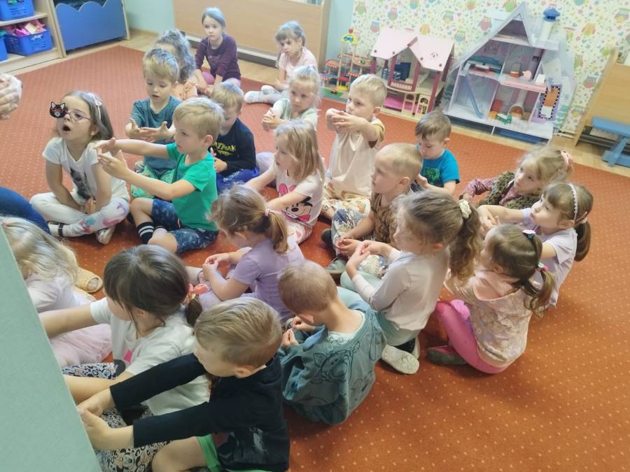 Zabawy Maczków w sali i ogrodzie