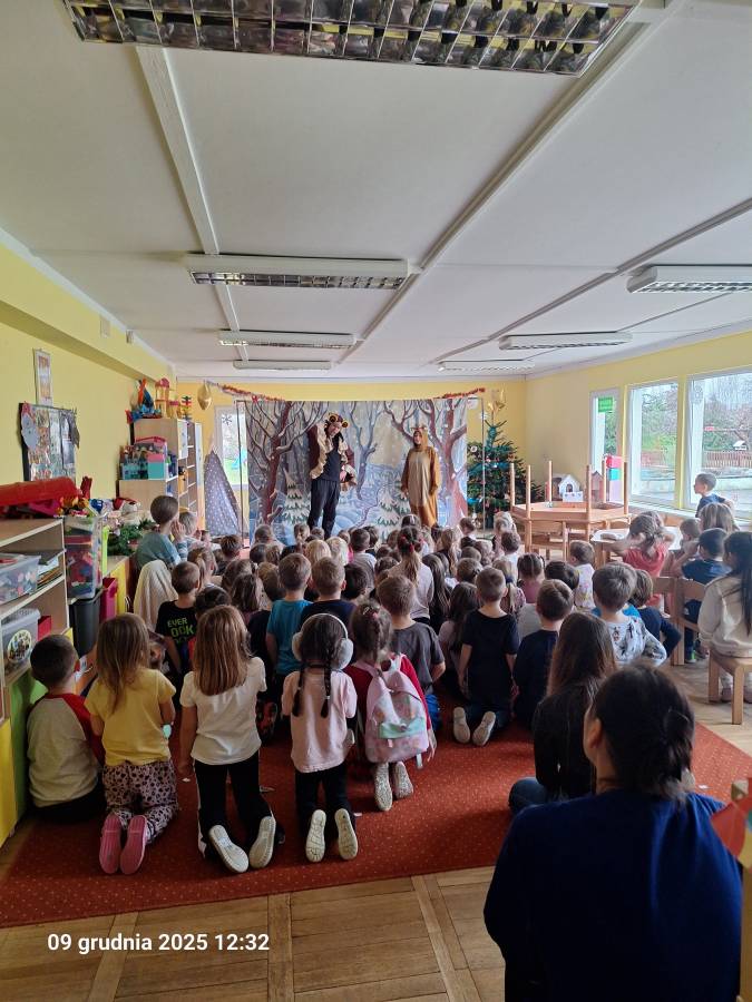 Dzisiaj przedszkolaki obejrzały teatrzyk o tematyce świątecznej, który bardzo wszystkim się podobał 👍!